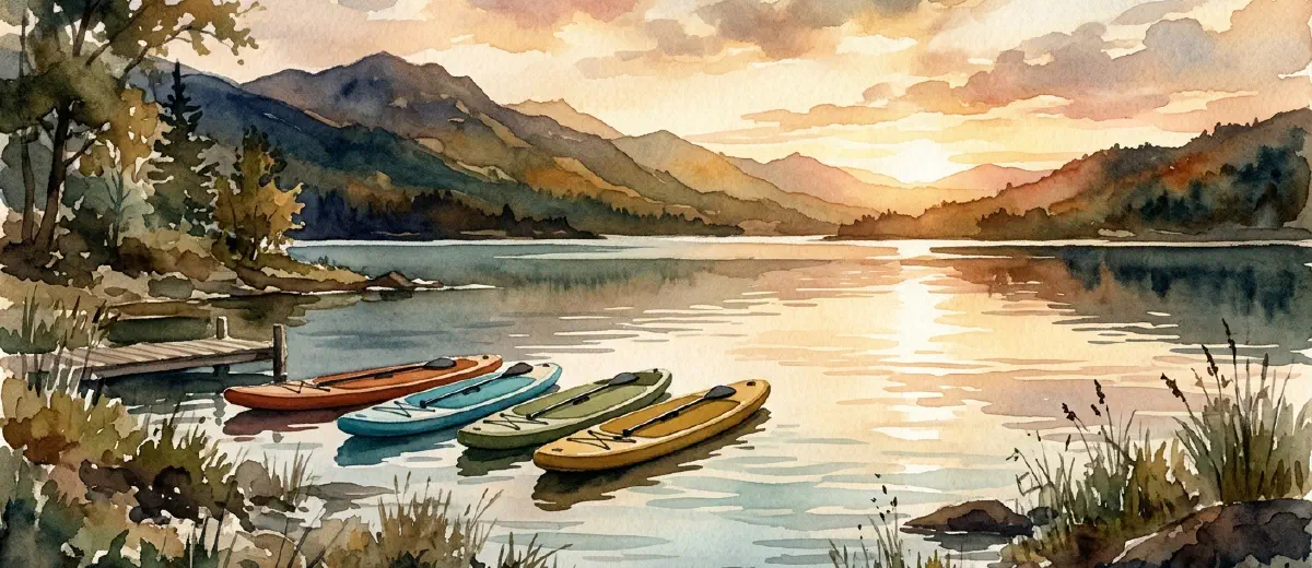 Upload at least fifteen to start. What works: boards on flat water with a clear horizon or a visible mountain backdrop, someone standing and paddling with good form, the launch area itself, and equipment that looks current and maintained. Wide shots showing the water your customers will be on convert well because they make the experience feel real. A row of boards on a dock does less than a single person mid-paddle on the water you actually operate on.